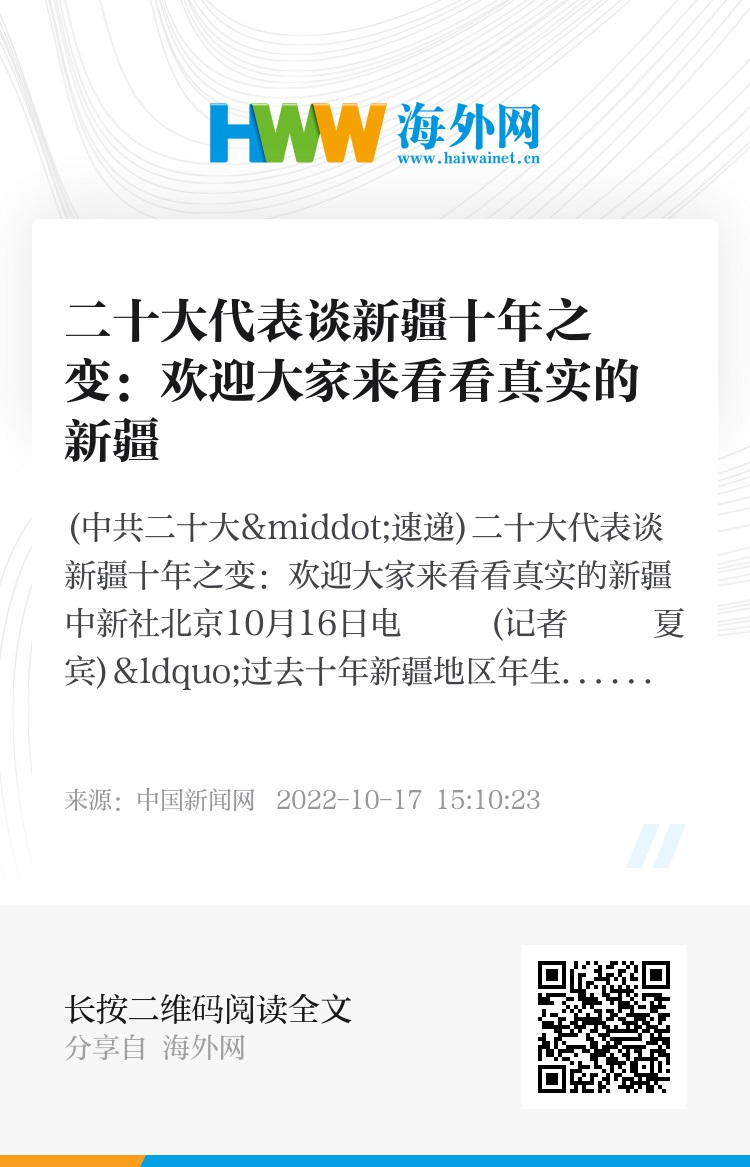 (中共二十大·速递)二十大代表谈新疆十年之变:欢迎大家来看看真实的新疆