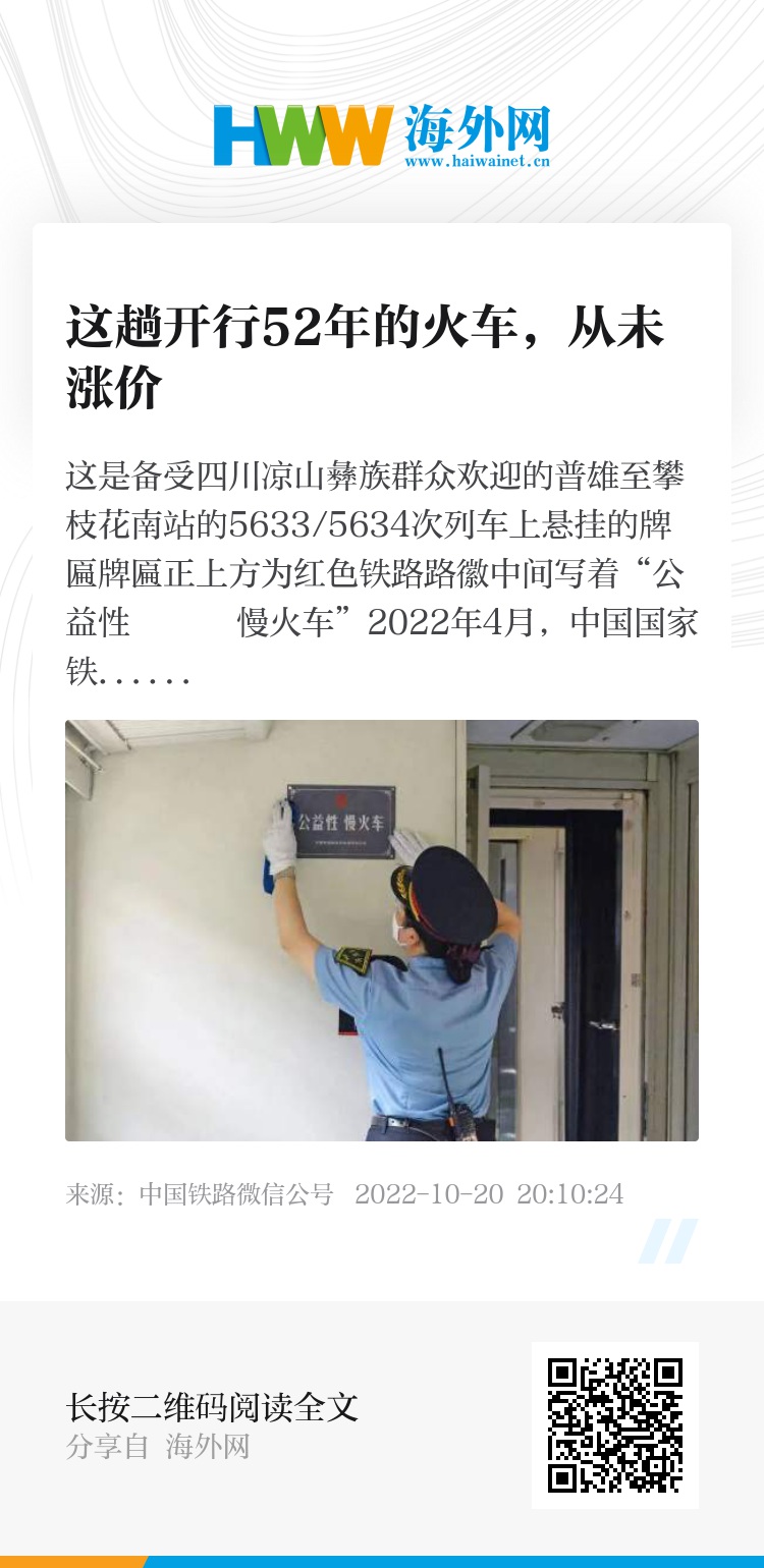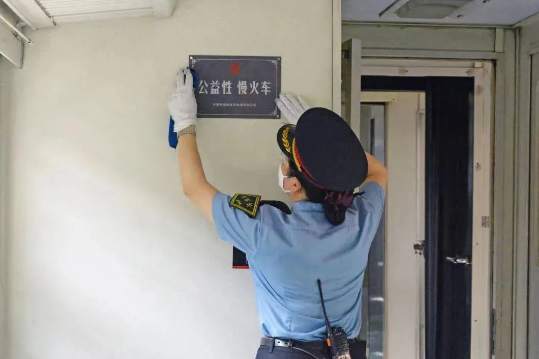 2022年4月,中国国家铁路集团有限公司在全国开行的公益性“慢火车”车厢内,统一挂上了这样的牌匾,让公益性“慢火车”这一“国企的品牌、社会主义的广告”更加深入人心。