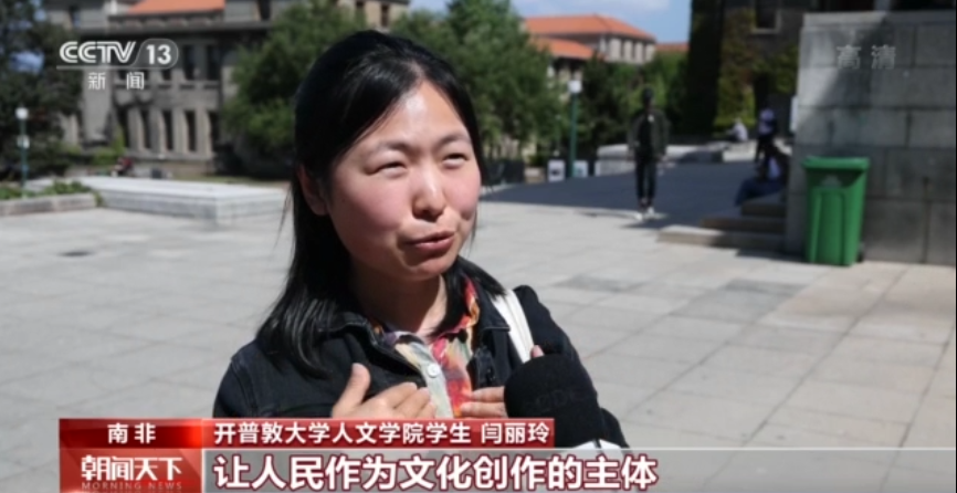 开普敦大学人文学院学生 闫丽玲:二十大提到我们要繁荣文化产业,让人民作为文化创作的主体,这一点对于我和我身边的南非朋友来说都是非常好的。因为我身边的很多南非朋友都想要了解现在中国发展是怎么样的,那他们就可以通过短视频的平台,了解中国的历史、文化、语言,以及现在人们的生活是怎样的。我也希望可以有更多优秀的、美好的中国故事讲给世界人民听。