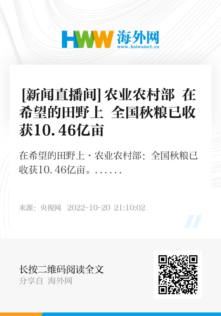 [新闻直播间]农业农村部 在希望的田野上 全国秋粮已收获10.46亿亩