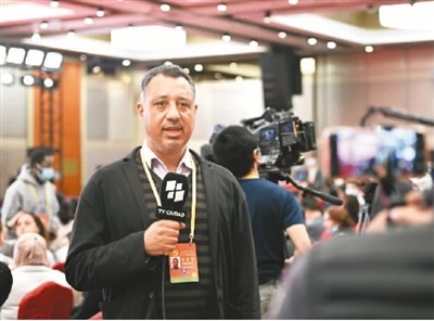 10月20日,在党的二十大新闻中心第四场记者招待会分会场,外国记者进行现场报道。本报记者 雷声摄