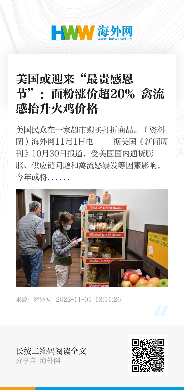 海外网11月1日电 据美国《新闻周刊》10月30日报道,受美国国内通货膨胀、供应链问题和禽流感暴发等因素影响,今年或将成为美国“史上最贵的感恩节”。
