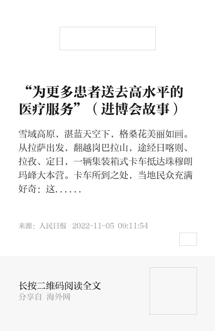 “这是我参加工作以来印象最深的一次巡诊。先进的技术帮助我们克服了西藏山高路远的困难。”张志英说,“创新的医疗设备将基层群众的问诊需求和优质医疗资源连接起来,进博会成为我们和世界交流的窗口。将来有机会,我也想去进博会看看!”