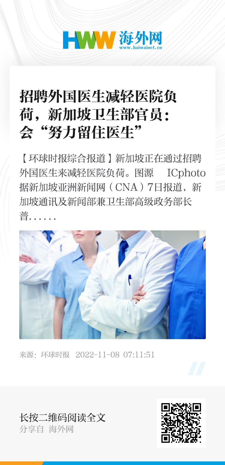 【环球时报综合报道】新加坡正在通过招聘外国医生来减轻医院负荷。