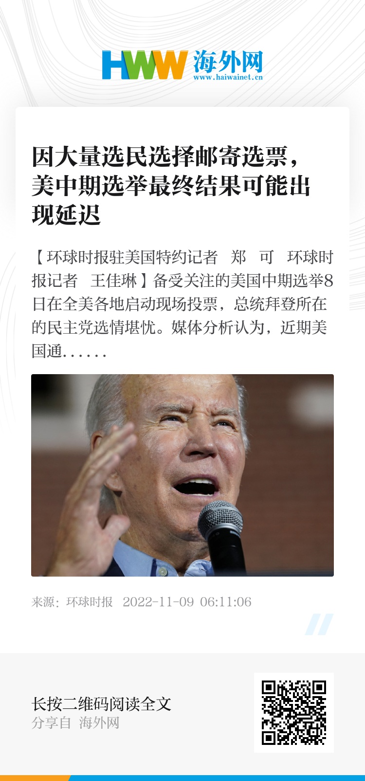 出于对暴力威胁的担忧,很多选民选择邮寄选票。而根据选举规则,邮寄选票以邮戳时间为准,截至8日当天邮寄的选票都为有效选票。这就导致选票的统计将出现延迟,从选票寄出到投票站收到选票进行统计可能需要几天时间,因此根据美国媒体保守估计,最终的投票结果将于下周初确认。如果再次出现2020年大选时个别州要重新计票的情景,最终结果或将更晚出炉。