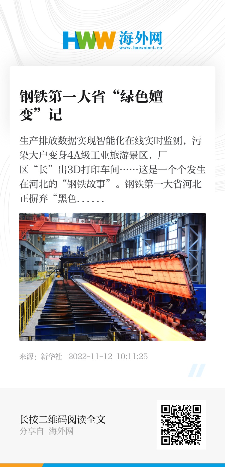 生产排放数据实现智能化在线实时监测,污染大户变身4A级工业旅游景区,厂区“长”出3D打印车间……这是一个个发生在河北的“钢铁故事”。