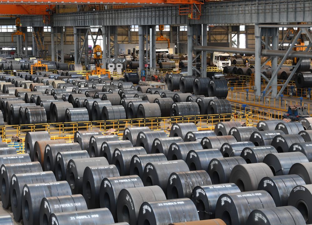 这是河钢集团唐钢公司的成品车间(2021年10月11摄)。新华社记者 杨世尧 摄