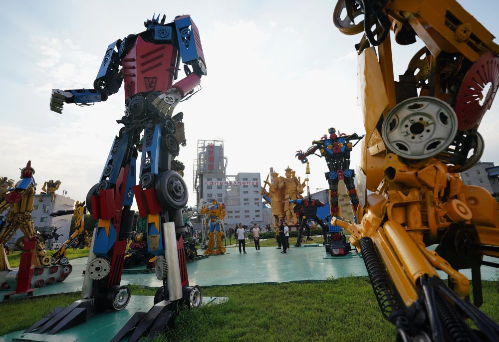 游客在邢台德龙钢铁有限公司参观钢铁雕塑(2022年8月16日摄)。新华社记者 杨世尧 摄