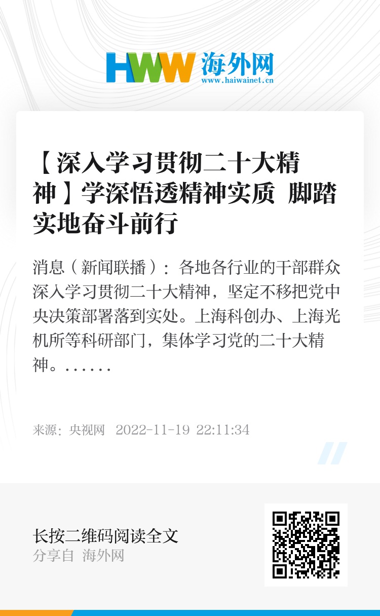 上海科创办、上海光机所等科研部门,集体学习党的二十大精神。十年来,上海加快建设了一批重大科技基础设施,形成了国际上规模最大、种类最全、综合能力最强的光子科学基础设施集群。