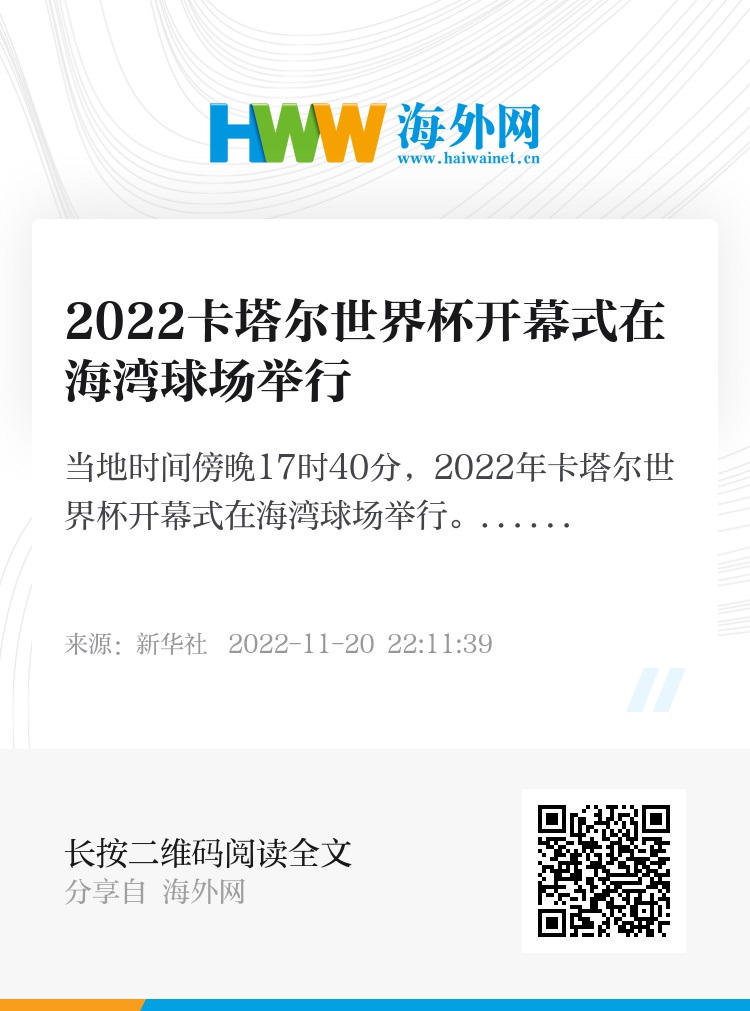 当地时间傍晚17时40分,2022年卡塔尔世界杯开幕式在海湾球场举行。