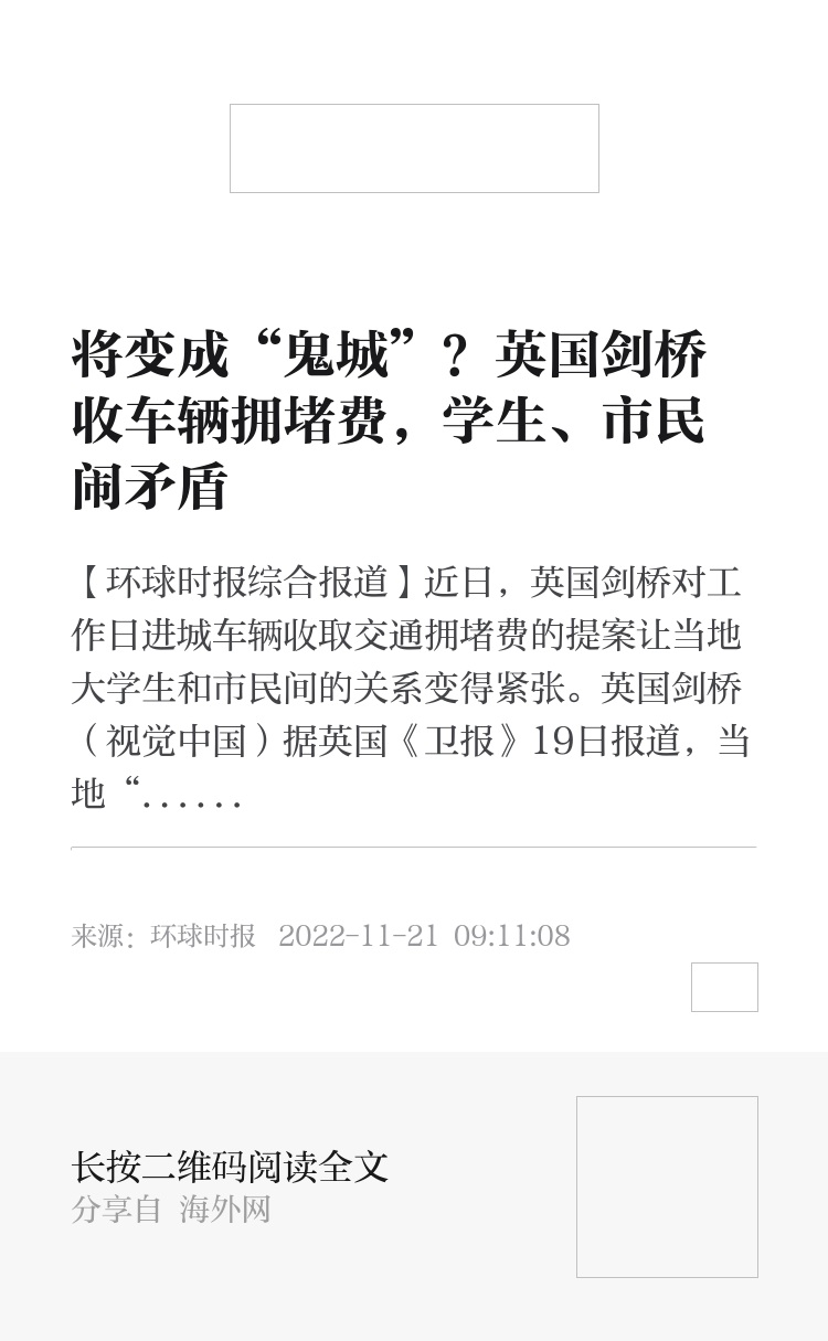 【环球时报综合报道】近日,英国剑桥对工作日进城车辆收取交通拥堵费的提案让当地大学生和市民间的关系变得紧张。
