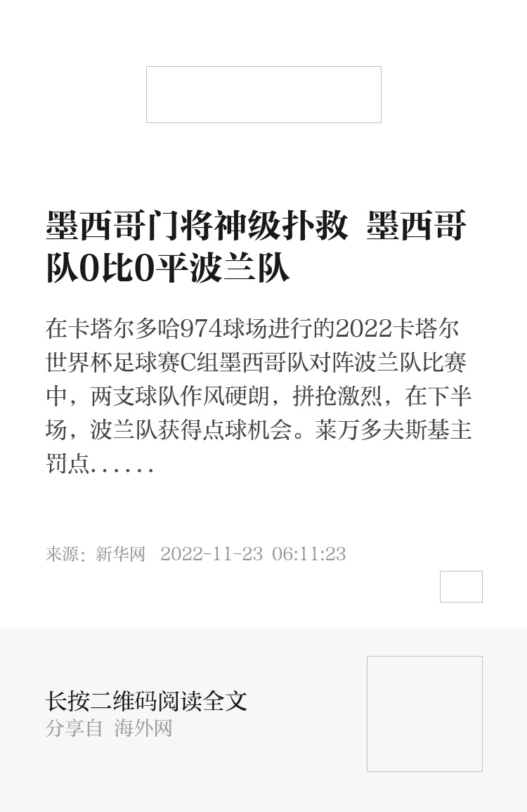 在卡塔尔多哈974球场进行的2022卡塔尔世界杯足球赛C组墨西哥队对阵波兰队比赛中,两支球队作风硬朗,拼抢激烈,在下半场,波兰队获得点球机会。莱万多夫斯基主罚点球被墨西哥门将奥乔亚神勇扑出!波兰队0:0墨西哥队,两队最终各取一分!