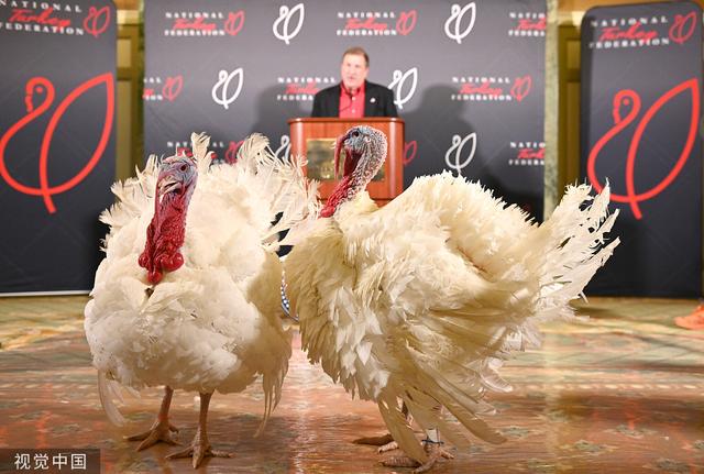 2022年感恩节美国总统赦免“幸运”火鸡亮相华盛顿。(视觉中国)
