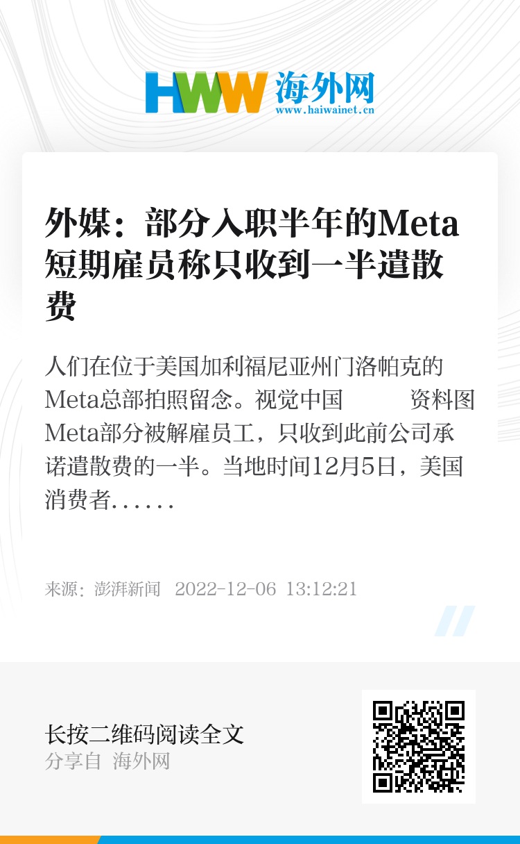 Meta部分被解雇员工,只收到此前公司承诺遣散费的一半。