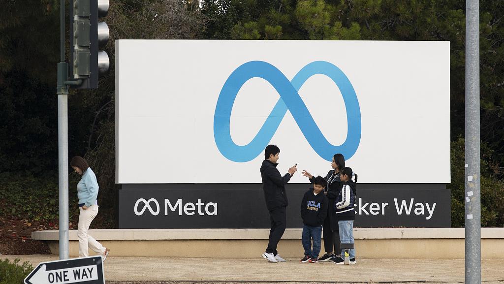 人们在位于美国加利福尼亚州门洛帕克的Meta总部拍照留念。视觉中国 资料图