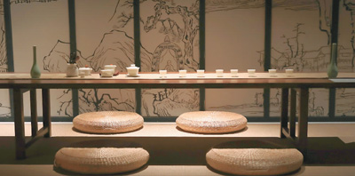 展厅中呈现的当代中式茶席。聂昱苗摄