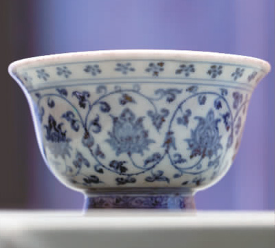 明永乐款青花缠枝莲纹压手杯,故宫博物院藏。动脉影摄