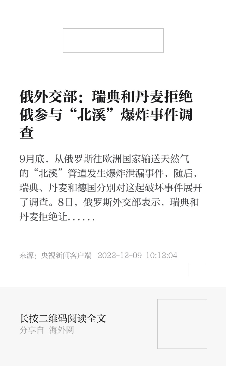 9月底,从俄罗斯往欧洲国家输送天然气的“北溪”管道发生爆炸泄漏事件,随后,瑞典、丹麦和德国分别对这起破坏事件展开了调查。8日,俄罗斯外交部表示,瑞典和丹麦拒绝让俄方参与“北溪”管道爆炸泄漏事件的相关调查。