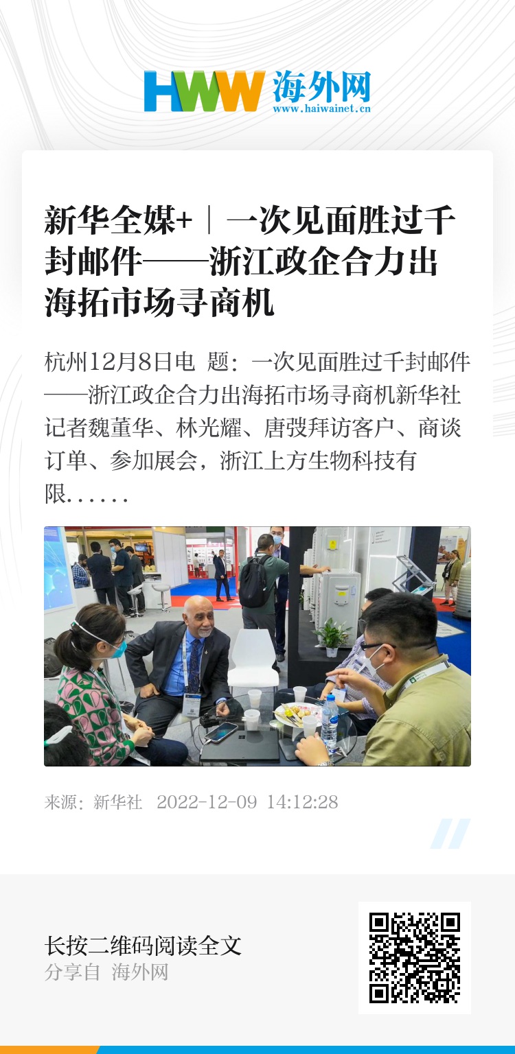 新华社杭州12月8日电 题:一次见面胜过千封邮件——浙江政企合力出海拓市场寻商机