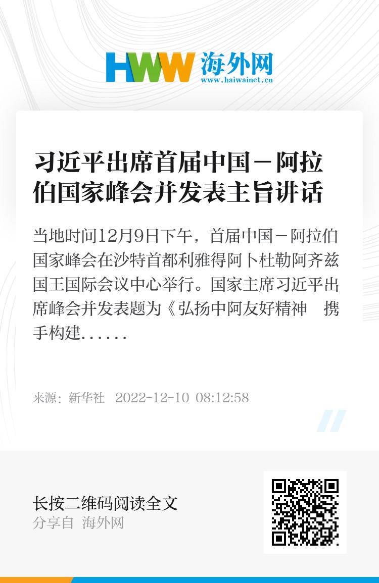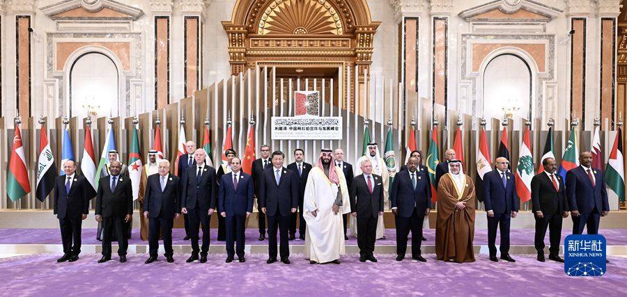 当地时间12月9日下午,首届中国-阿拉伯国家峰会在沙特首都利雅得阿卜杜勒阿齐兹国王国际会议中心举行。国家主席习近平和沙特王储兼首相穆罕默德、埃及总统塞西、约旦国王阿卜杜拉二世、巴林国王哈马德、科威特王储米沙勒、突尼斯总统赛义德、吉布提总统盖莱、巴勒斯坦总统阿巴斯、卡塔尔埃米尔塔米姆、科摩罗总统阿扎利、毛里塔尼亚总统加兹瓦尼、伊拉克总理苏达尼、摩洛哥首相阿赫努什、阿尔及利亚总理阿卜杜拉赫曼、黎巴嫩总理米卡提等21个阿盟国家领导人以及阿拉伯国家联盟秘书长盖特等国际组织负责人出席峰会。