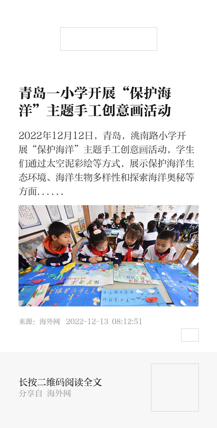 2022年12月12日,青岛,洮南路小学开展“保护海洋”主题手工创意画活动,学生们通过太空泥彩绘等方式,展示保护海洋生态环境、海洋生物多样性和探索海洋奥秘等方面内容,提高学生热爱海洋、保护海洋家园的意识。图源:视觉中国