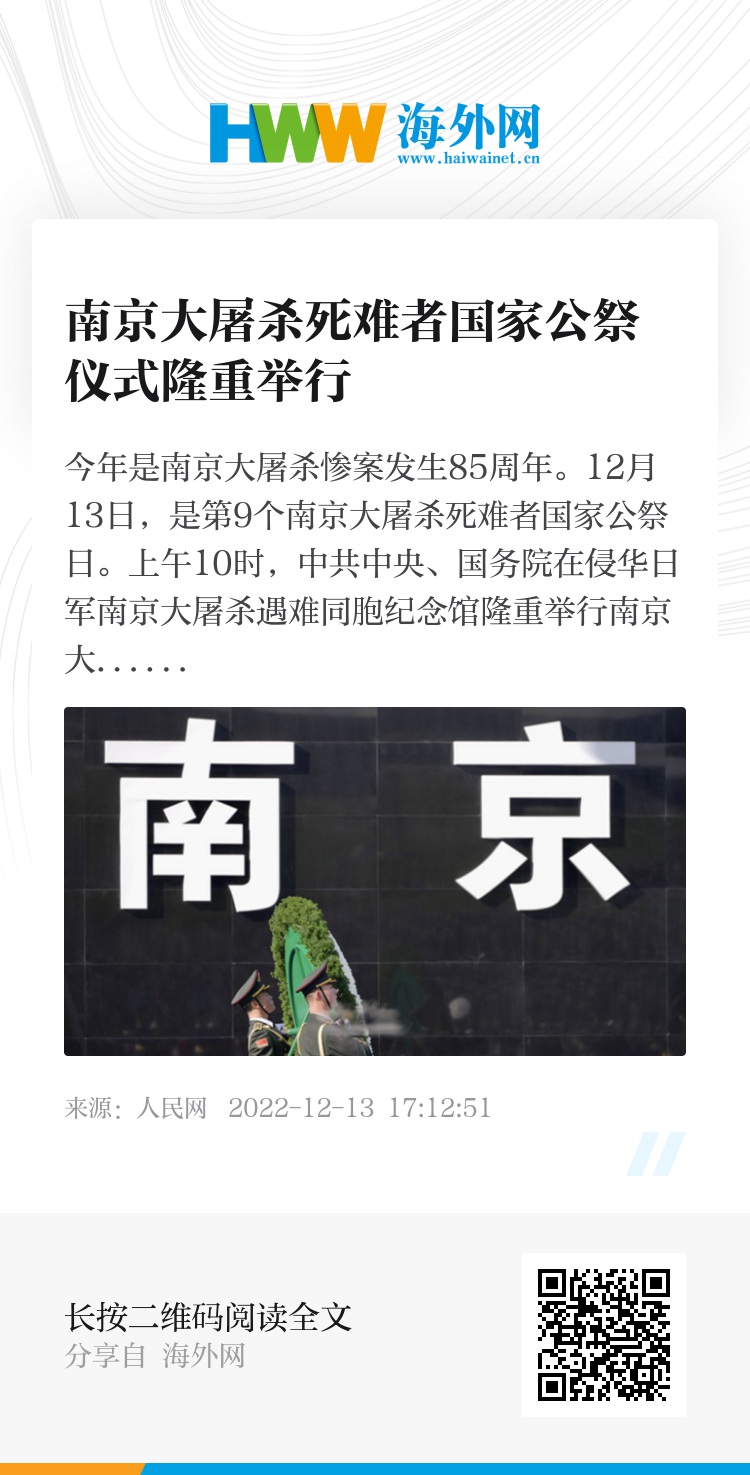 今年是南京大屠杀惨案发生85周年。12月13日,是第9个南京大屠杀死难者国家公祭日。上午10时,中共中央、国务院在侵华日军南京大屠杀遇难同胞纪念馆隆重举行南京大屠杀死难者国家公祭仪式。(人民网 马焘焘摄)