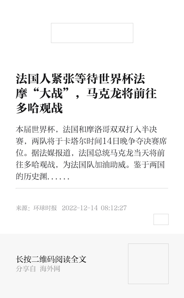 本届世界杯,法国和摩洛哥双双打入半决赛,两队将于卡塔尔时间14日晚争夺决赛席位。据法媒报道,法国总统马克龙当天将前往多哈观战,为法国队加油助威。鉴于两国的历史渊源和现实纠葛,这场比赛在法国受关注的程度已超出体育范畴。