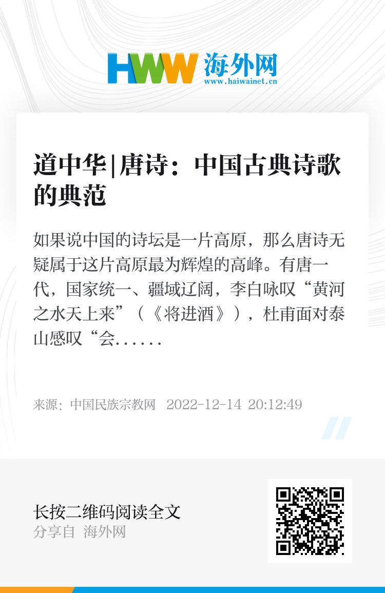 “前不见古人,后不见来者。”如果说中华文化是中国人生活的升华,那么唐诗就是中国人文化高度的写照。