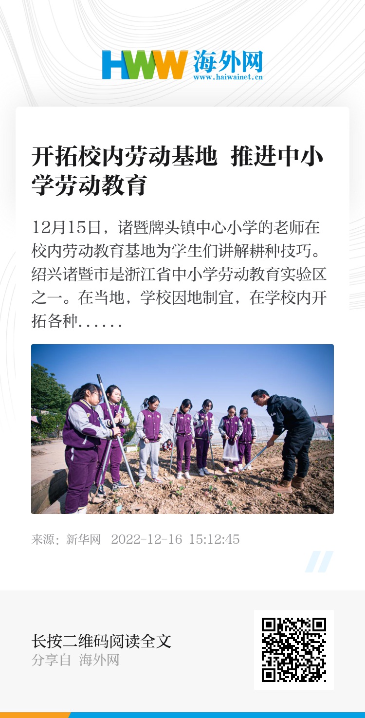 12月15日,诸暨牌头镇中心小学的老师在校内劳动教育基地为学生们讲解耕种技巧。绍兴诸暨市是浙江省中小学劳动教育实验区之一。在当地,学校因地制宜,在学校内开拓各种特色劳动教育基地,推进中小学劳动教育课程的开展。目前,诸暨市共有79所学校拥有校内劳动基地。新华社记者 江汉 摄