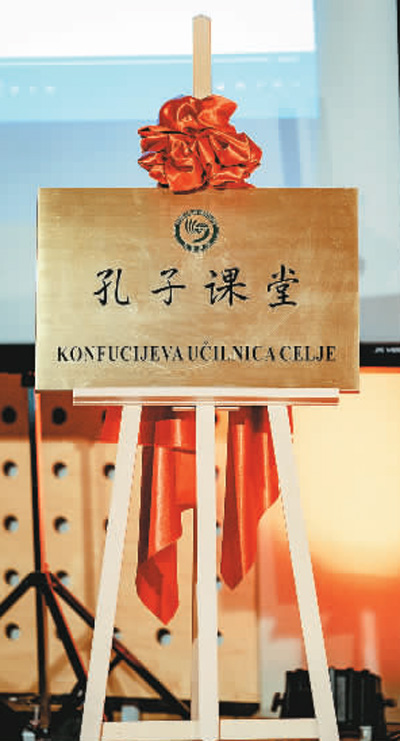 图为斯洛文尼亚卢布尔雅那大学孔子学院下设的采列孔子课堂11月17日在该国第四大城市采列举行揭牌仪式。