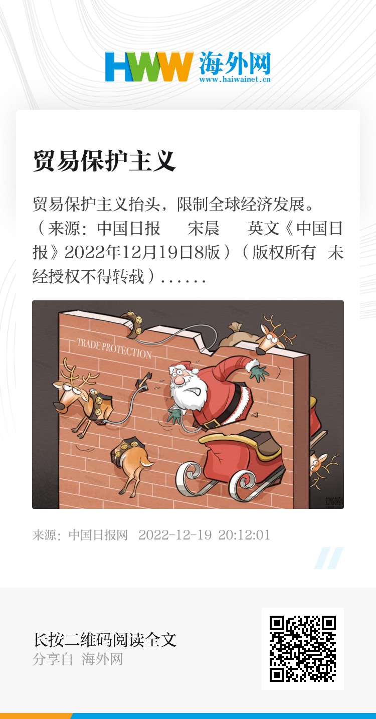 贸易保护主义抬头,限制全球经济发展。(来源:中国日报 宋晨 英文《中国日报》2022年12月19日8版)