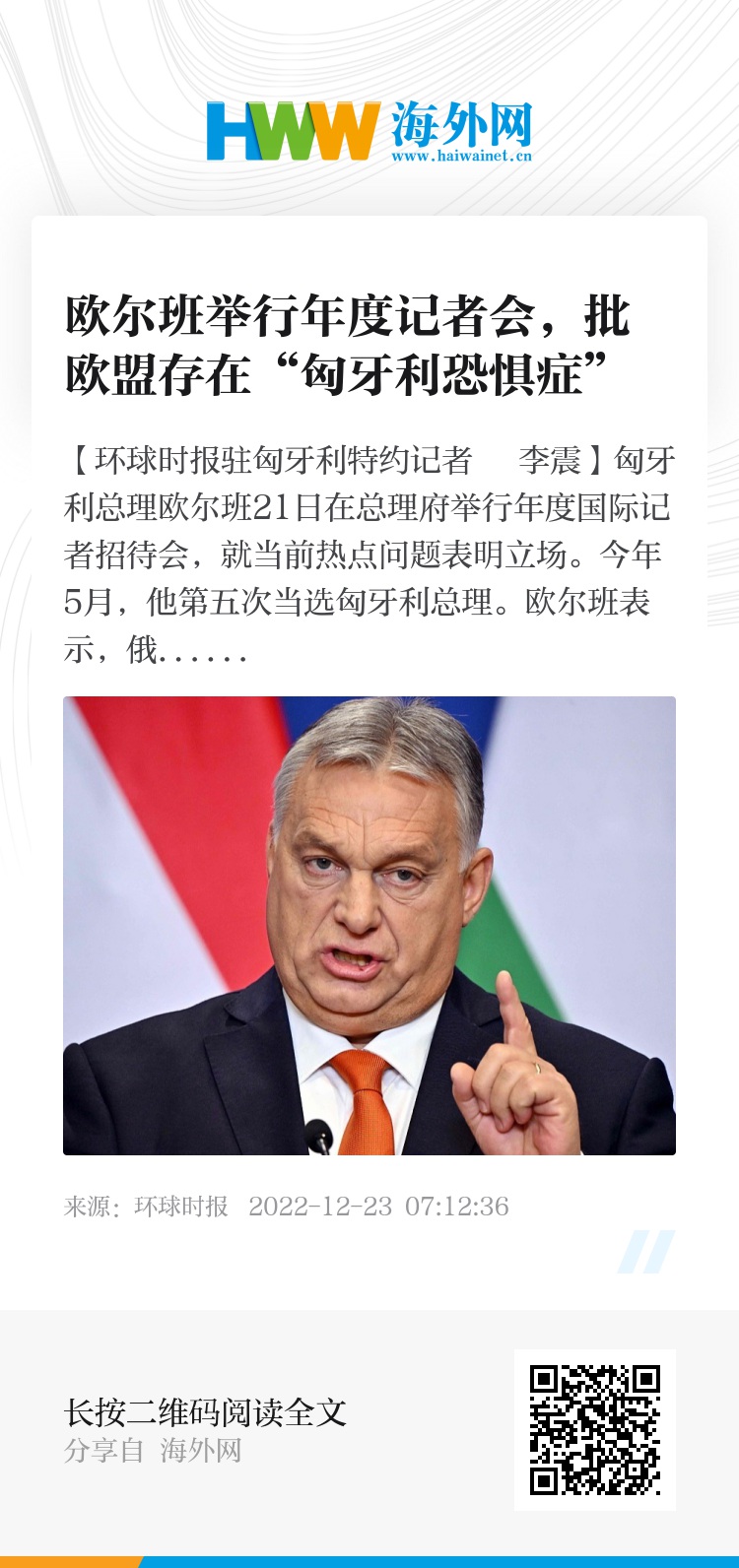 此外,欧尔班还在回答记者提问时表示反对欧洲国家与中国“脱钩”,支持建设复旦大学匈牙利分校。