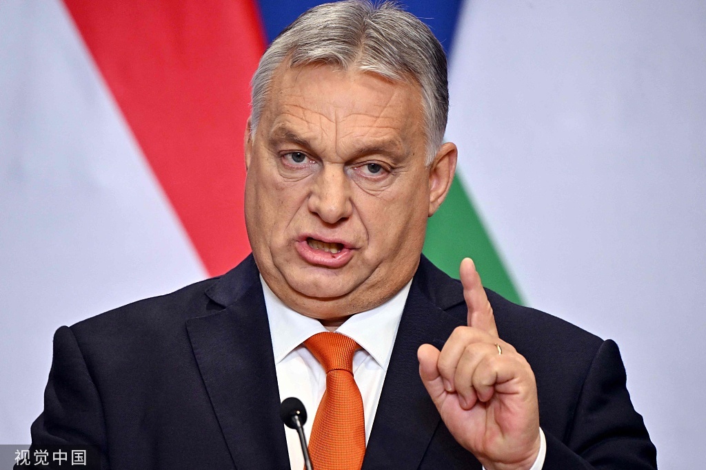 匈牙利总理欧尔班21日在总理府举行年度国际记者招待会。(视觉中国)