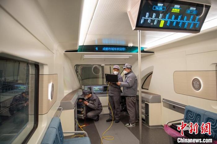 技术人员正在调试氢能源市域列车。