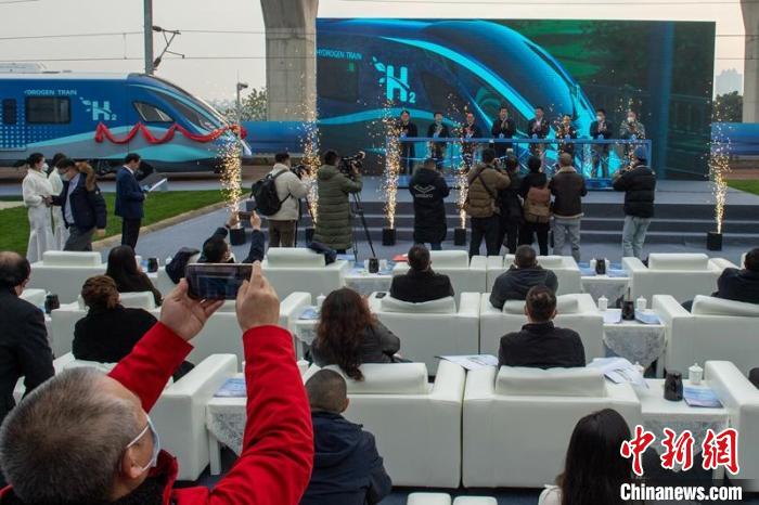 全球首列氢能源市域列车下线亮相仪式现场。 刘忠俊 摄