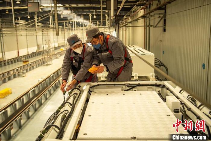 技术人员正在紧张调试氢能源市域列车。 刘忠俊 摄