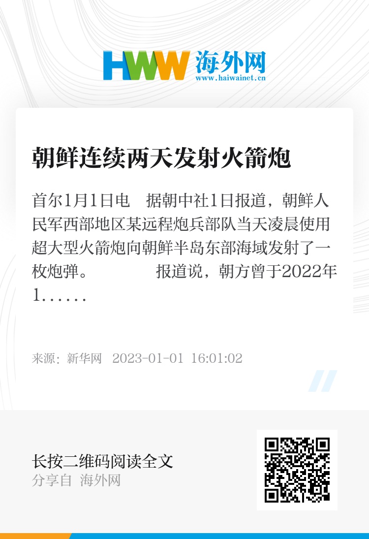 报道说,朝方曾于2022年12月31日上午对这款超大型火箭炮进行性能验收试射,3枚火箭炮弹精确命中朝鲜半岛东部海域一座目标岛屿。
