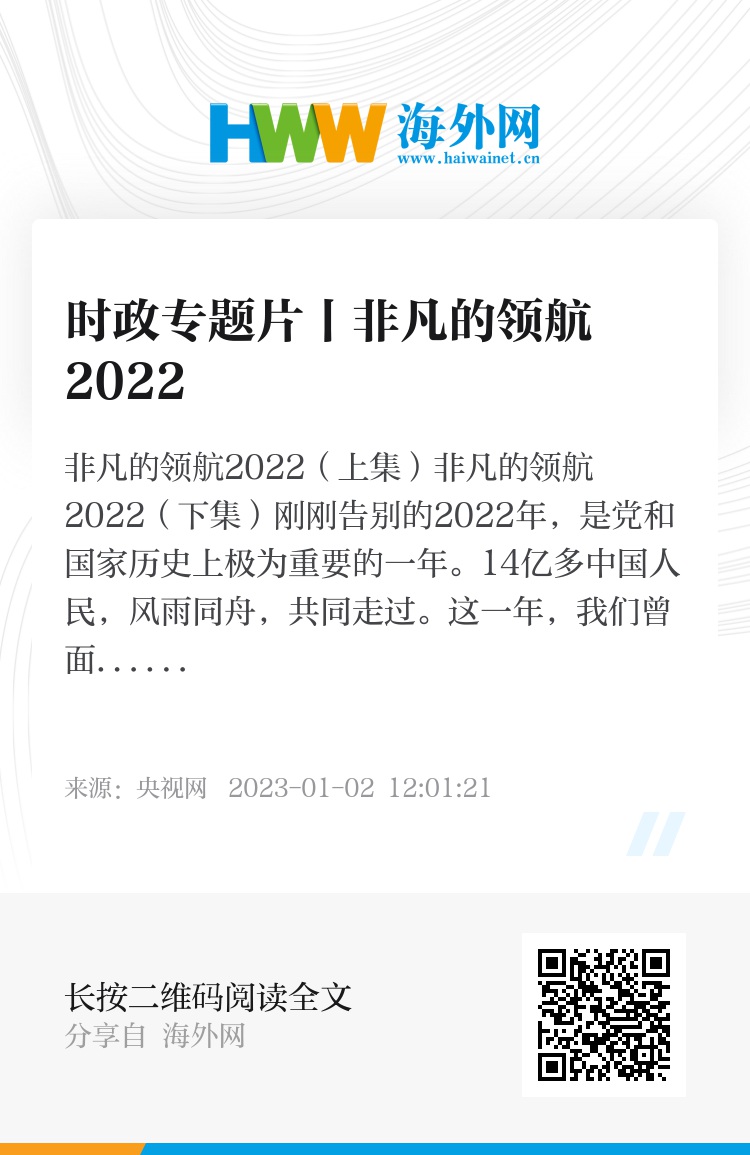 2023年1月1日,中央广播电视总台推出特别节目《非凡的领航2022》。