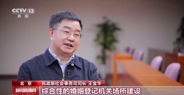 民政部社会事务司司长 王金华:综合性婚姻登记机关场所建设是下一步的一个方向,民政部门想大力推广这种做法,创新载体,给婚事新办简办提供场所和阵地,新郎新娘一站式就可以把婚事办完,领了证然后照了相,亲戚朋友都来参加见证他们这种幸福的时刻。
