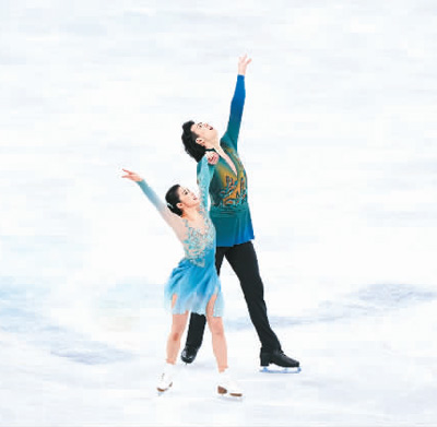 冰舞选手王诗玥(左)和柳鑫宇在比赛中