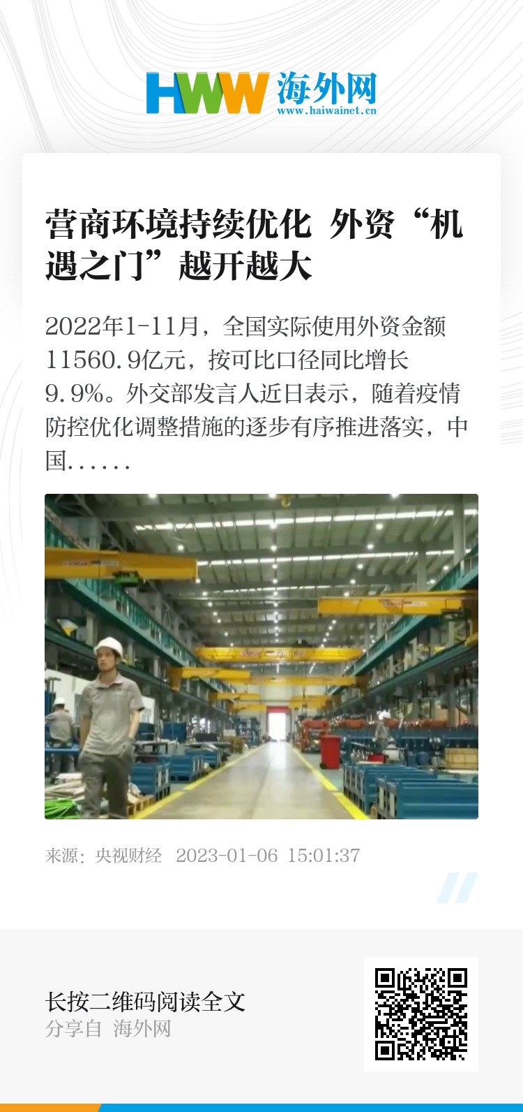 日益完善的营商环境、不断开放的中国市场,为外资企业打开“机遇之门”,也见证着中国持续扩大开放的决心和步伐。更多精彩内容,敬请观看本期《央视财经评论》!