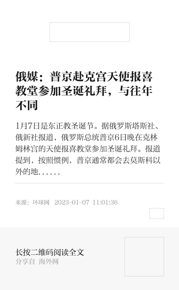 1月7日是东正教圣诞节。据俄罗斯塔斯社、俄新社报道,俄罗斯总统普京6日晚在克林姆林宫的天使报喜教堂参加圣诞礼拜。