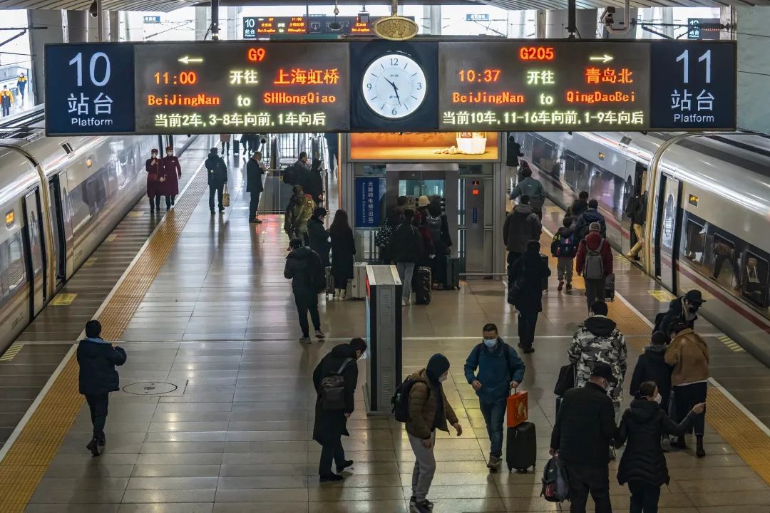 一列列复兴号动车组满载归乡者,踏上温馨归家路。