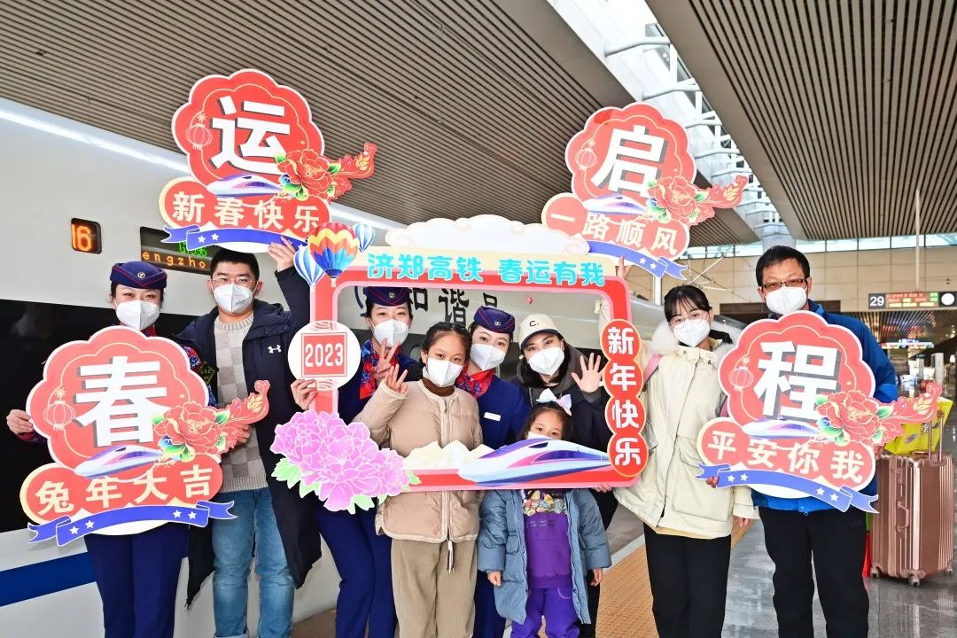 1月7日8时45分,在郑州东站29道站台,旅客们兴奋地和G7996次列车合影留念。这是济郑高铁濮郑段开通运营后迎来的首个春运。对于豫东北地区的群众来说,“坐着高铁回家过年”终于从美好的愿望变成了触手可及的现实。