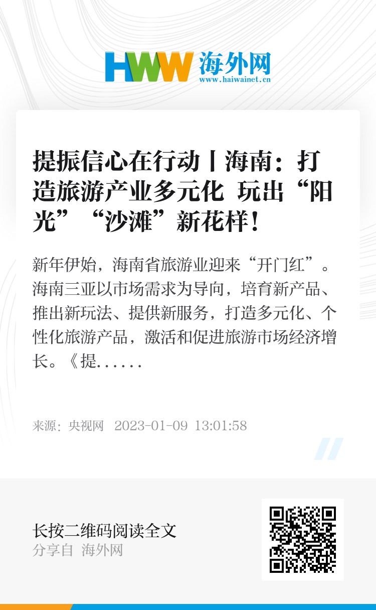 提振信心在行动丨海南:打造旅游产业多元化 玩出“阳光”“沙滩”新花样!