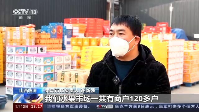 山西省临汾市某果品市场负责人 许新强:我们水果市场一共有商户120多户,每天回货量是400多吨,每天销货量300多吨。