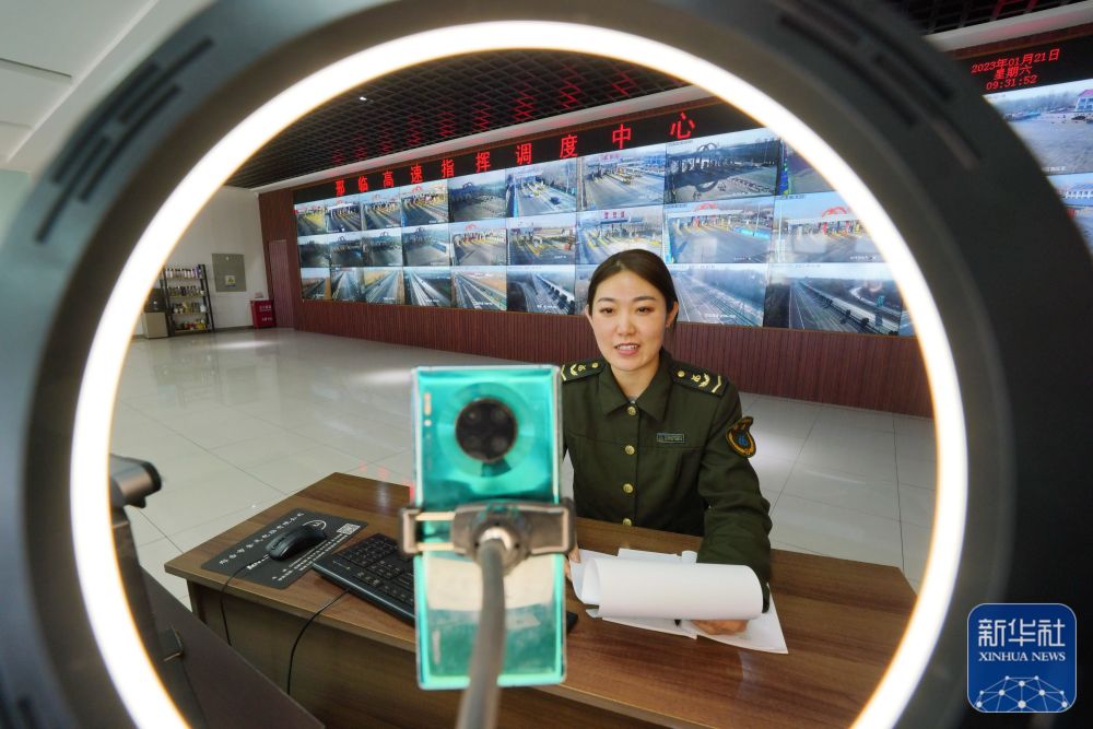 1月21日,在河北邢临高速公路开发有限公司指挥调度中心,主播曹晓玉介绍路况信息。新华社记者 牟宇 摄