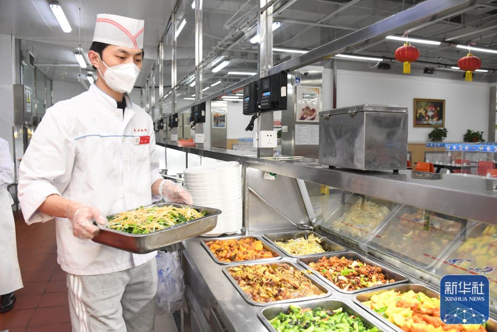 1月21日,在北京交通大学学苑餐厅,工作人员将制作好的午餐放入窗口。新华社记者 任超 摄