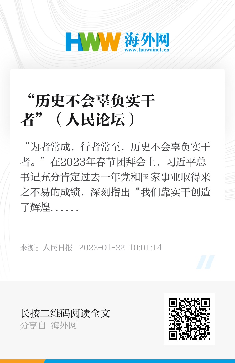 “为者常成,行者常至,历史不会辜负实干者。”在2023年春节团拜会上,习近平总书记充分肯定过去一年党和国家事业取得来之不易的成绩,深刻指出“我们靠实干创造了辉煌的过去,还要靠实干开创更加美好的未来”。