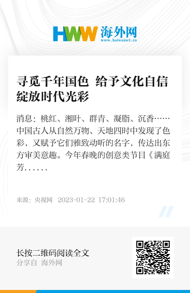 2022年8月,春晚导演组找到中国色彩专家郭浩,提出希望将中国传统色彩美学以多元的艺术形式融入到春晚节目的设想,创新研发的第一步是选择什么样的色彩作为中国色。